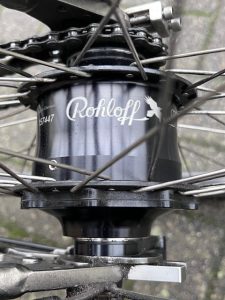 Het hart van deze fiets is de legendarische Rohloff 14-versnellingsnaaf: extreem duurzaam, onderhoudsarm en altijd soepel schakelen — zelfs stilstaand. Met de GripShift-bediening wissel je in één vloeiende beweging van versnelling.